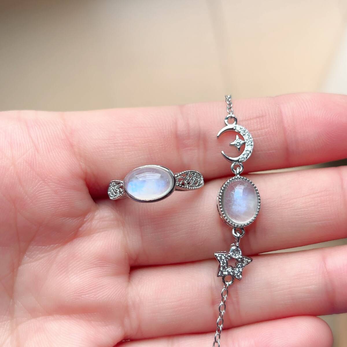 > ◇ブルームーンストーン◇ブレスレット+リング(指輪)◇パワーストーン◇天然石◇巾着袋付き◇プレゼントにも 035S3163