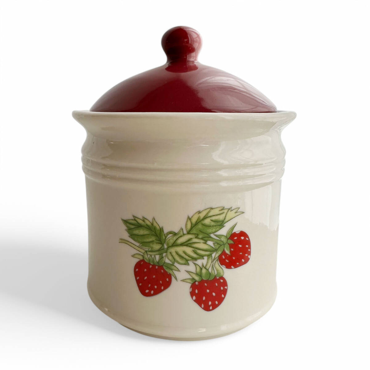 - T7-514 ヴィンテージ 陶器 キャニスター いちご柄 保存容器 インテリア雑貨 小物入れ