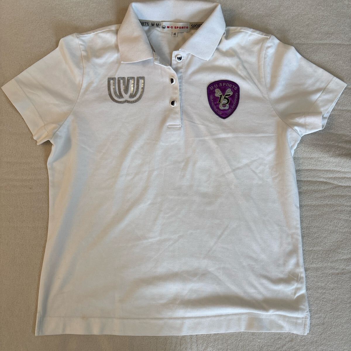 > ☆ ミエコウエサコ M・U SPORTS 白ポロシャツ M〜Lサイズ相当 刺繍ロゴ