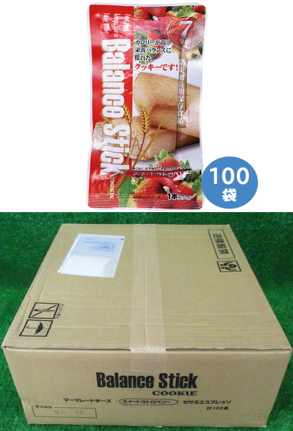 > Kモな5874 新品■バランススティック クッキー スイートストロベリー 100袋 306kcal■賞味期限2031.5月■Balance Stick 保存食 非常食