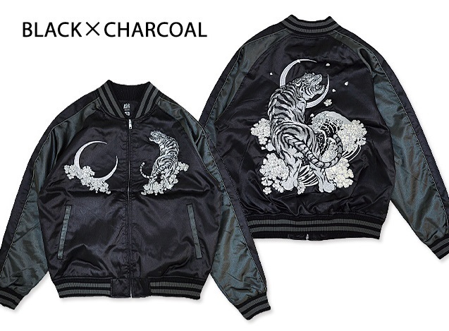 - 月虎スカジャン◆朧/キッズ ブラック×チャコールS(110cm~120cm)サイズ 9021881 和柄 和風 子供服 刺繍 トラ おぼろ