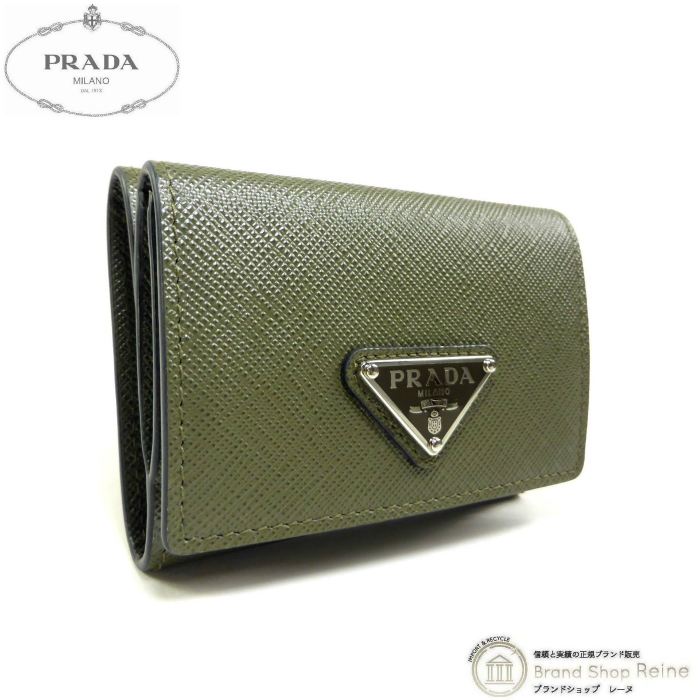> プラダ (PRADA) サフィアーノ トライアングルロゴ コンパクト 三つ折り 財布 2MH042 LODEN メンズ(中古)
