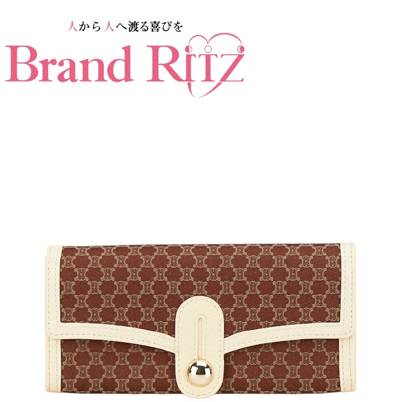 > 中古 セリーヌ 財布 マカダム ウォレット 長財布 ブラウン ABランク キャンバス レザー レディース CELINE 【送料無料】【名谷店】