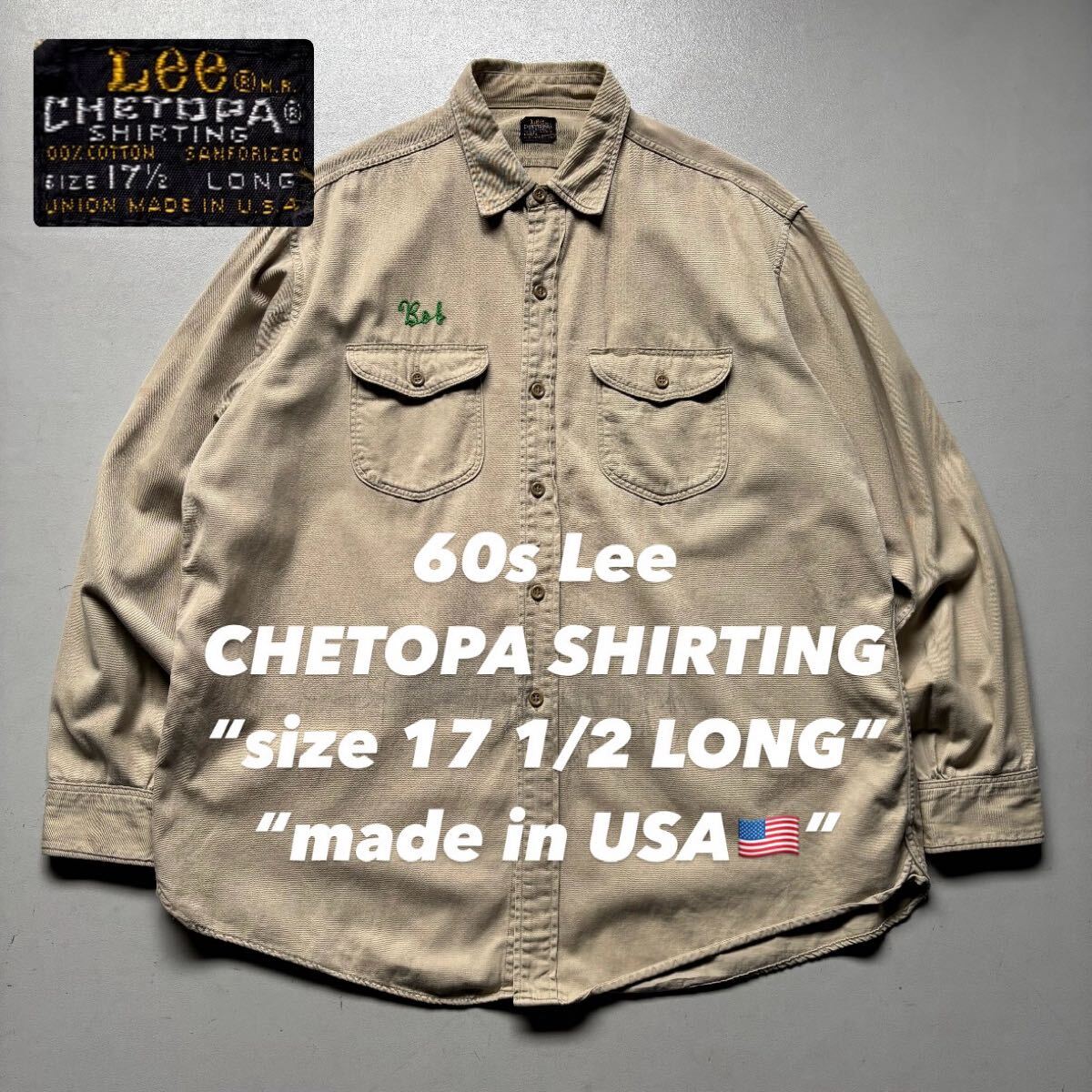 > 60s Lee CHETOPA SHIRTING “size 17 1/2 LONG” “made in USA” 60年代 リー ツイル ワーク オールコットン USA製 アメリカ製 長袖シャツ