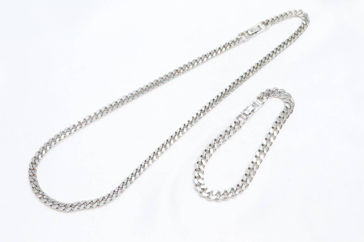- 【Ki166】喜平チェーン ロング ネックレス ブレスレット 2点 セット シルバーカラー 未使用保管品【送料全国一律185円】