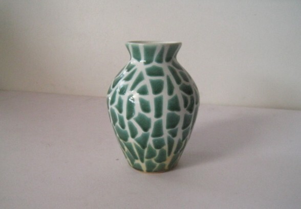 - 陶器の花器 白地にグリーンのデザイン 花瓶 花器 フラワーベース サイズ:外径11×H15㎝/24N11.21-59