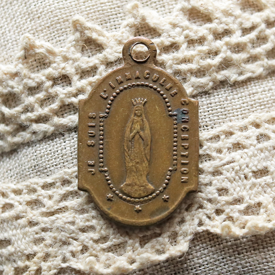 - フランス アンティーク【ルルドの聖母マリア】メダイ インマキュラータ 聖母戴冠/LOURDES メダル ロザリオ キリスト マリア 教会/S