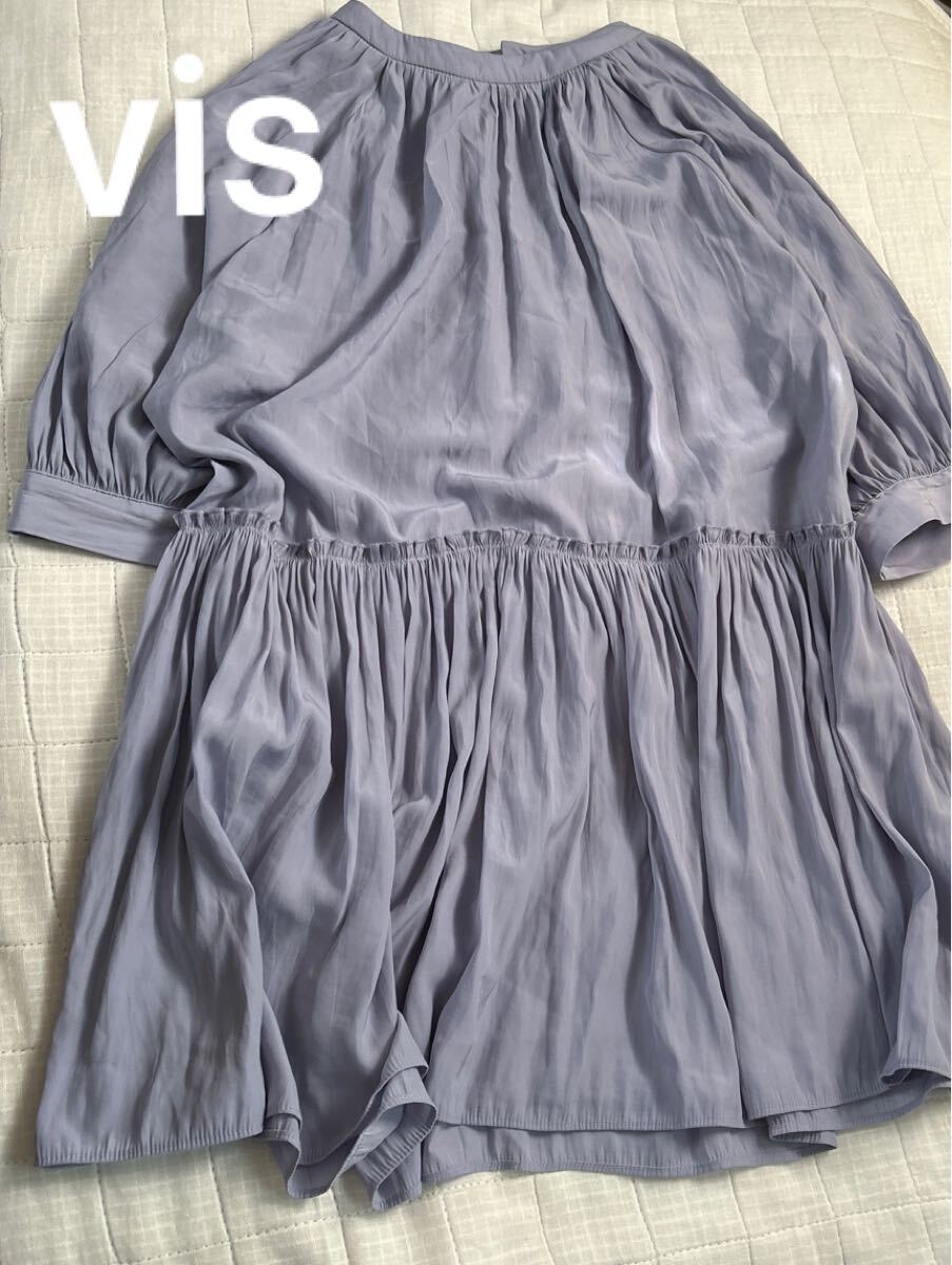 - vis ふんわり ギャザーたっぷり ペールブルー チュニック ブラウス カットソー 綺麗め 上品 サイズf