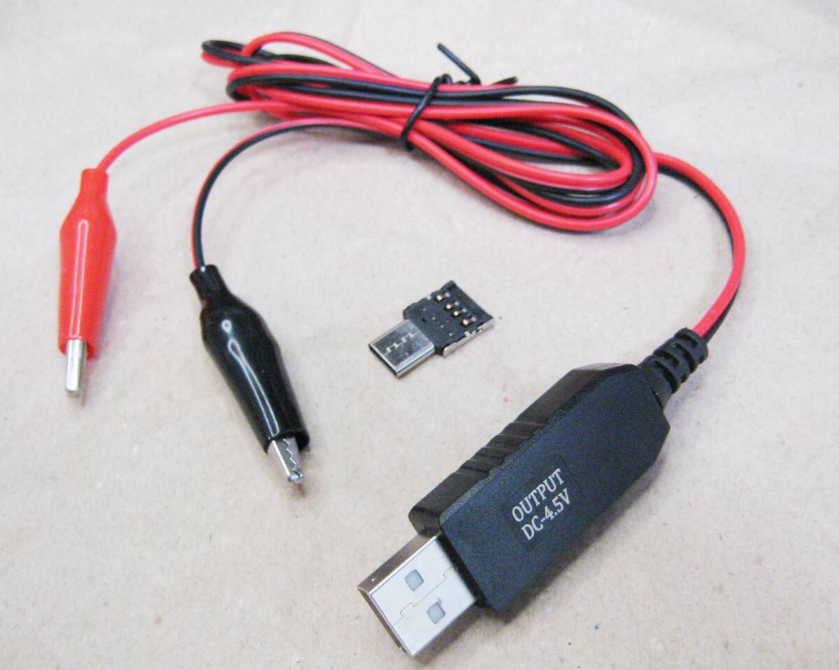 > (送料140円~) USB 5V → ワニ口クリップ 4.5V DC 変換 アダプタ― ケーブル 電源 (1.5v乾電池3本相当)#0545 在庫3