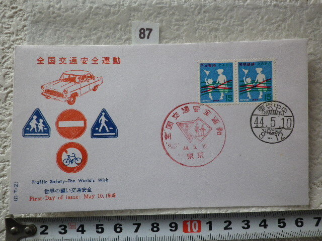 - FDC 全国交通安全運動 1969年 2貼2消 nfc日本風景社版 あんない入●87●