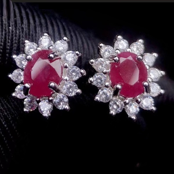 クラシックなルビーナットピアス,925シルバー,0.8カラット,天然アフリカ産,オフィスウーマン向け