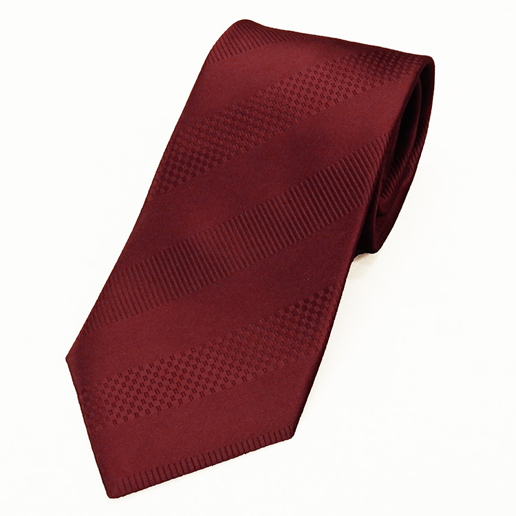 - 京都西陣織 ネクタイ シルク100% ワイン/織柄ストライプ メール便OK NJ-OST07