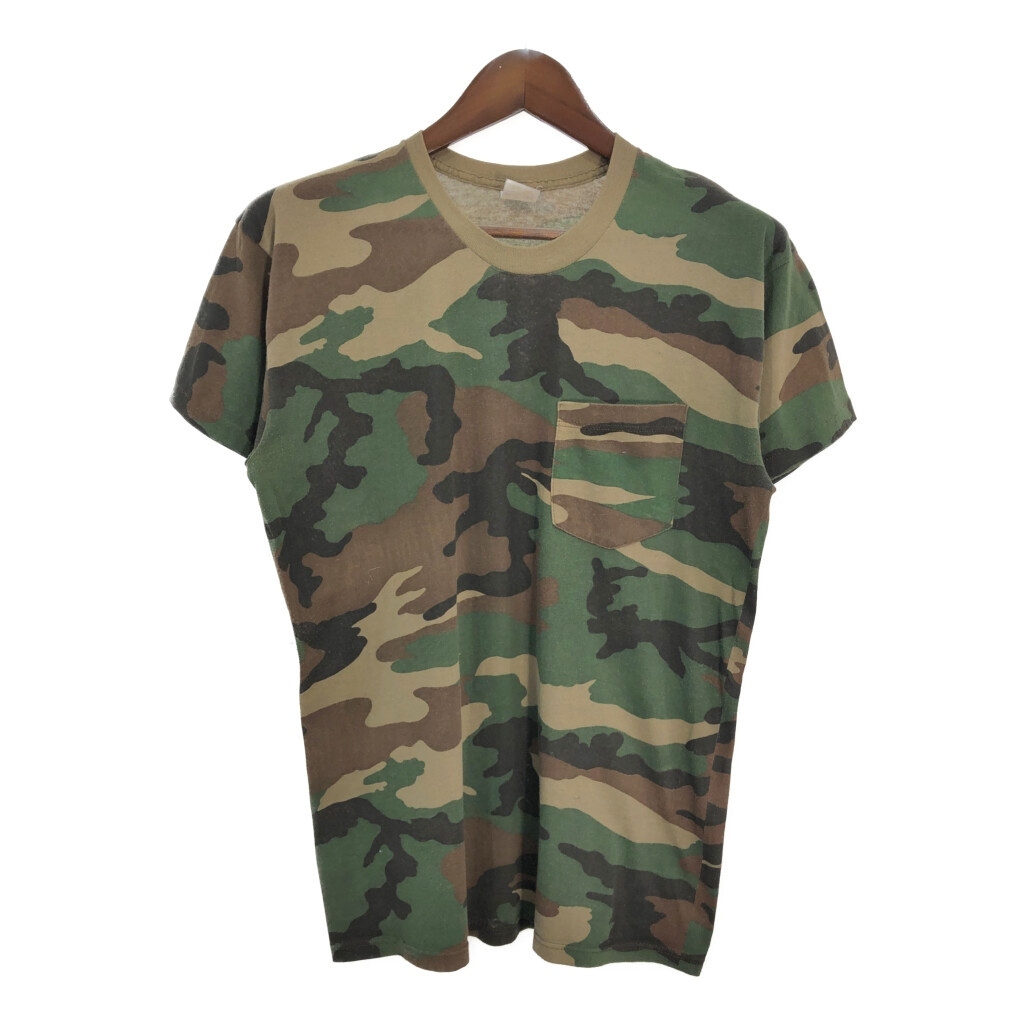 - 80年代 USA製 DUCK BAY 半袖Tシャツ アウトドア 迷彩 グリーン(メンズ L)中古 古着 T6802