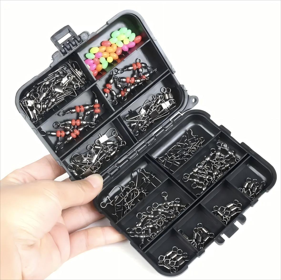 - 釣り道具 140点入 スイベル スナップ 釣りセット 三方サルカン親子サルカン 淡水海水用 磯釣り 蛍光玉ビーズ 仕掛け ケース付き