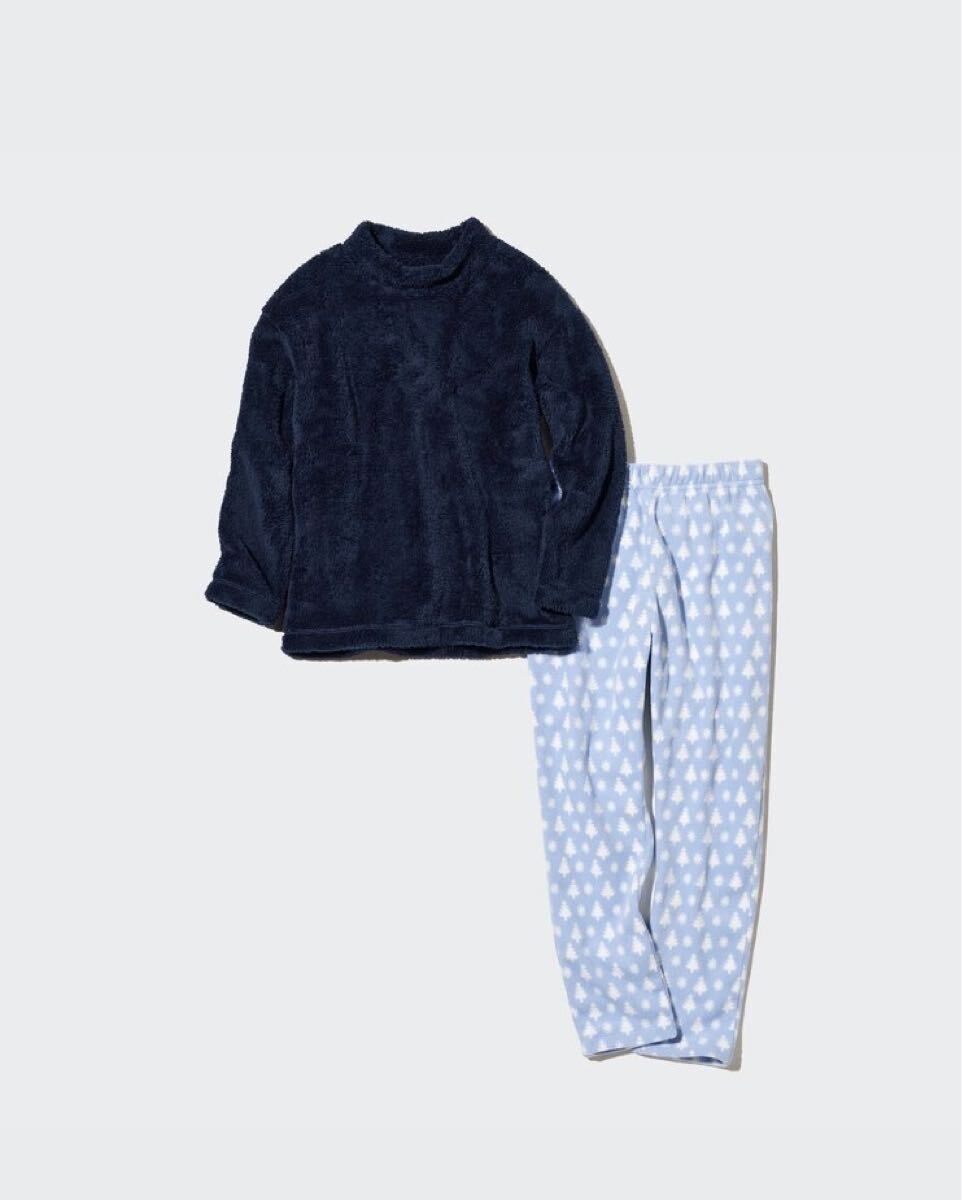 > ユニクロGIRLS ファーリーフリース サイズ130 ネイビー ブルー パジャマ ルームウェア