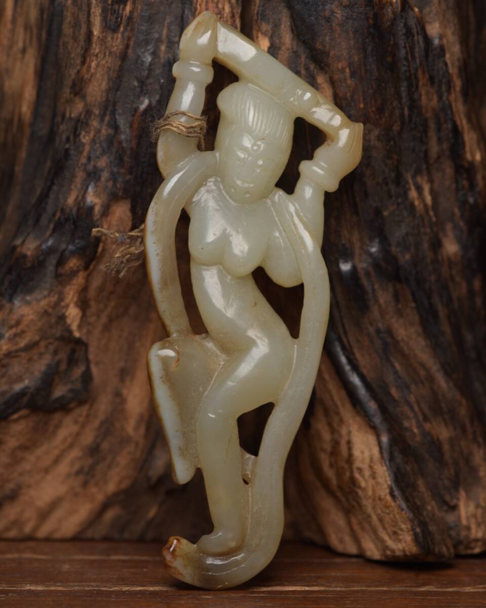 - 『館蔵珍品 和田玉製 細密彫 美女』置物 賞物 貴重物品 収蔵品 中国古美術