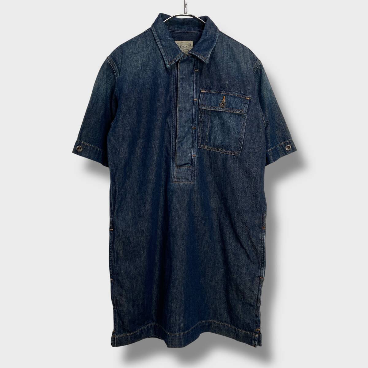 - 送料無料☆RalphLauren☆ラルフローレン☆デニムワンピース☆半袖☆ミドル丈☆インディゴ☆レディースS☆C25M