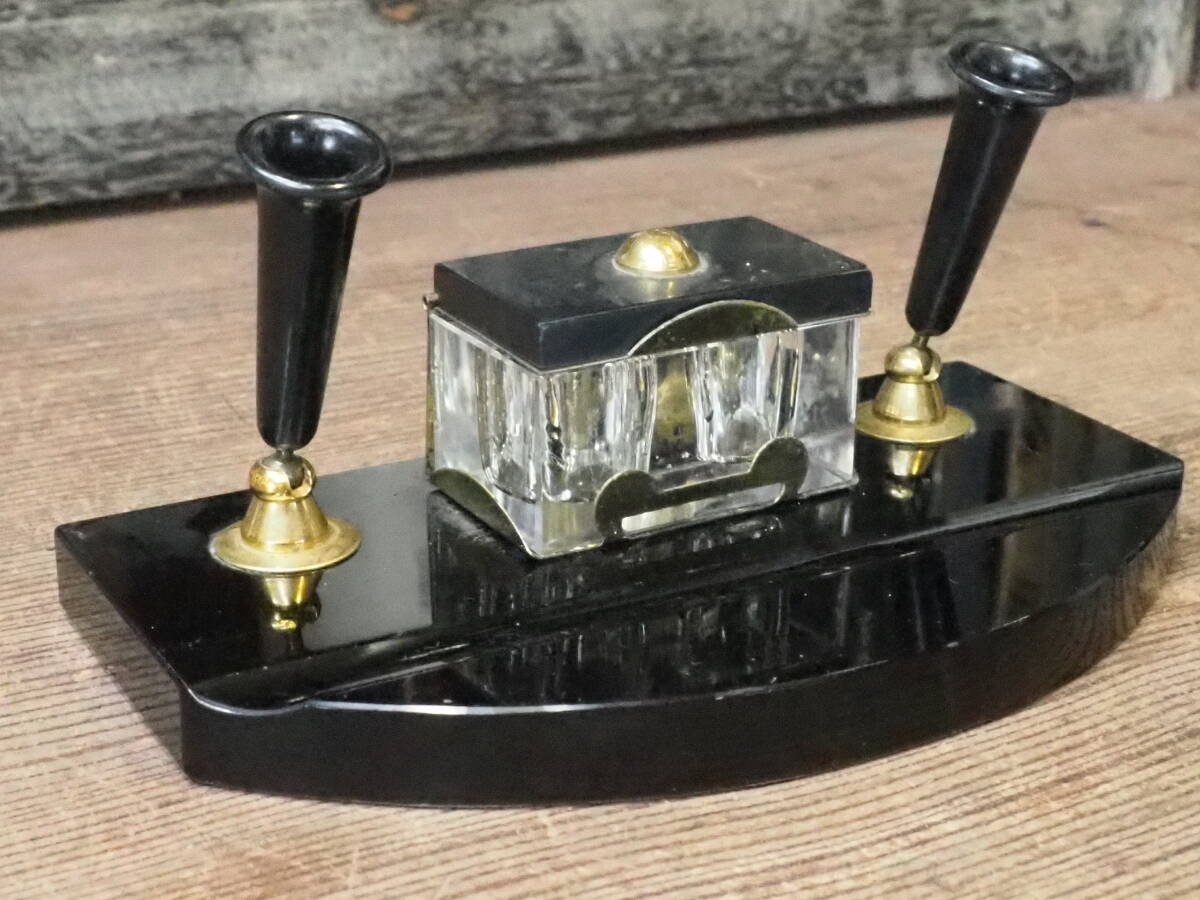 - 【古いガラス製のインク壺】ペン立て昭和レトロインク瓶インテリアドライフラワー万年筆インダストリアル古道具アンティーク文具