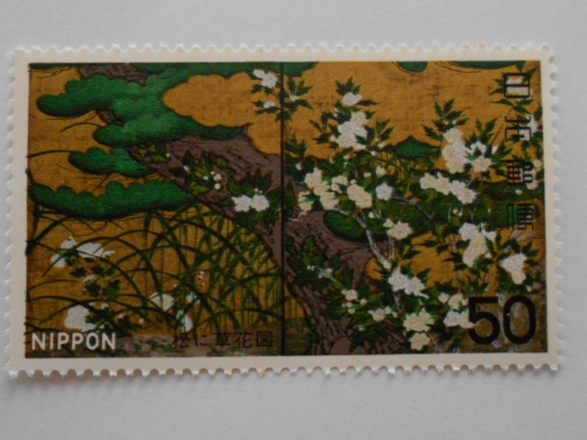 - 第2次国宝6集 松に草花図 未使用50円切手(556)