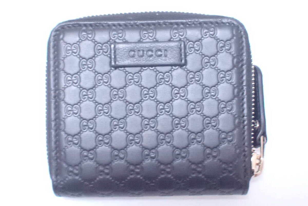 - グッチ マイクログッチシマ 449395 レザー コンパクトウォレット ブラック