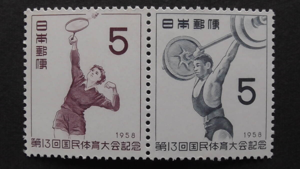 - 記念切手 第13回国民体育大会『重量あげ』 5円+『バトミントン』 5円