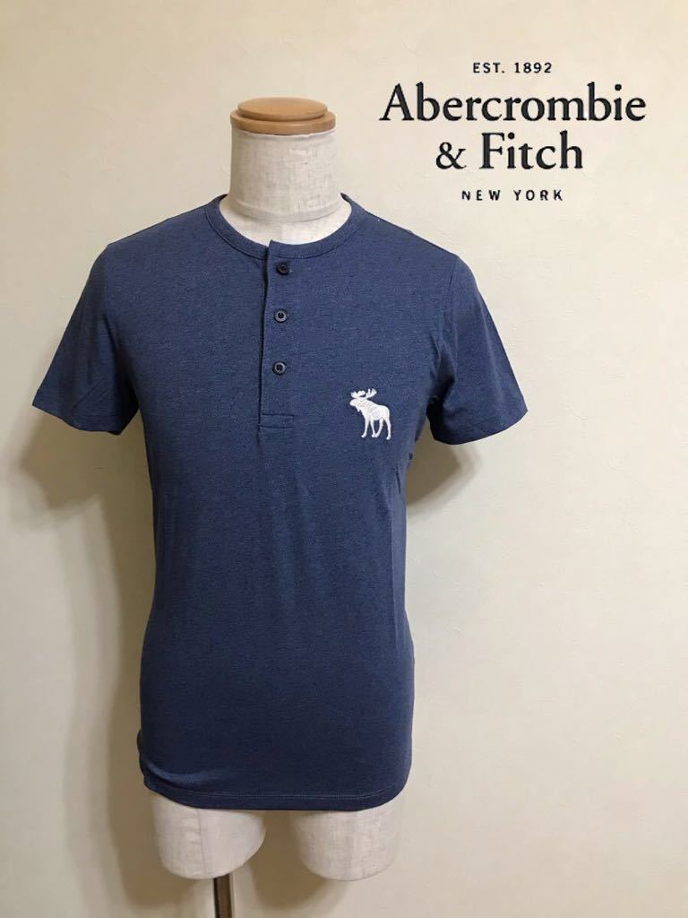 - 【新品】 Abercrombie & Fitch アバクロンビー&フィッチ エクスプローテッド アイコン ヘンリーネック Tシャツ サイズS ヘザーブルー 半袖