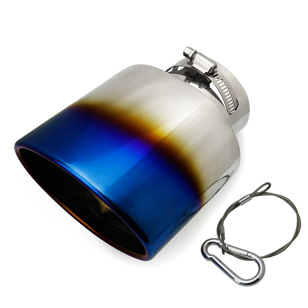 > 「脱落防止ワイヤー付き」ステンレス製 チタン調 オーバルマフラーカッター 大口径 外装 カスタムパーツドレスアップ 約45mm~66mm適用