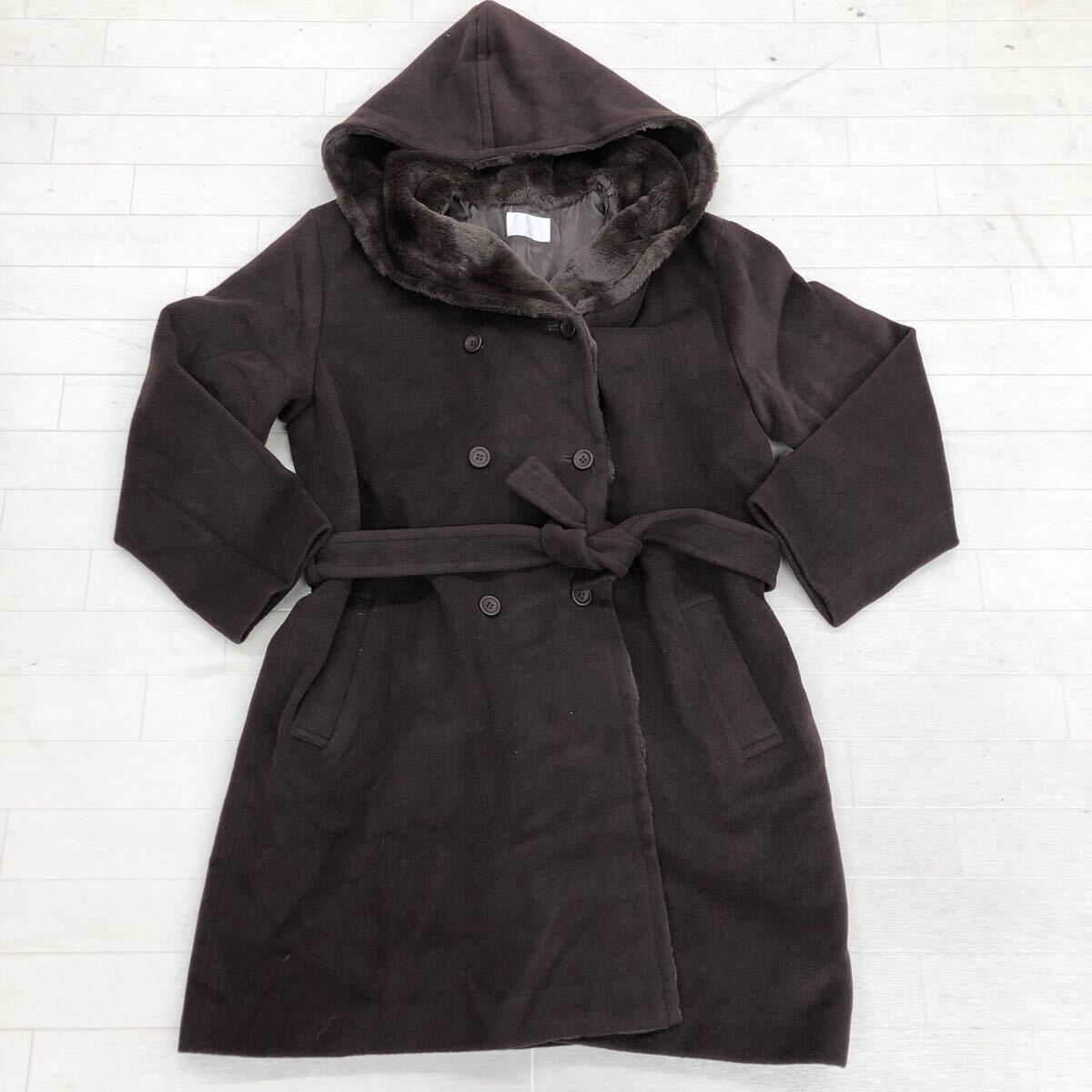 > 1720〓 KETTY ケティ ダブルミドルコート レディース サイズM ダークブラウン アウター コート フーディ カジュアル