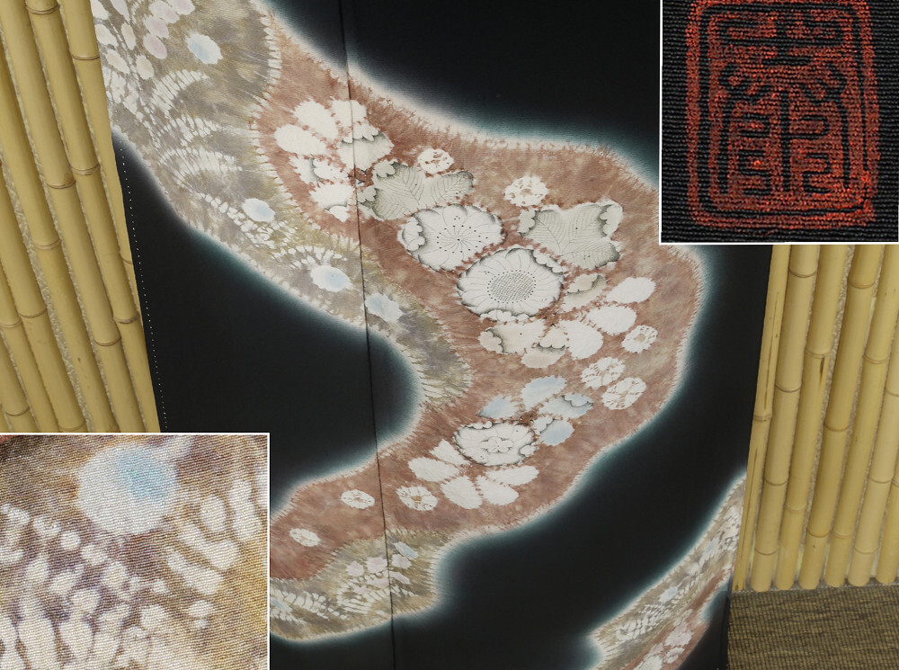 - 【京かんざし】772【十日町友禅の名門[滝泰謹製]】辻が花絞り訪問着 躾糸付未着用 黒地身丈158 cm裄丈65 cm袖丈47 cm★即決送料無料!