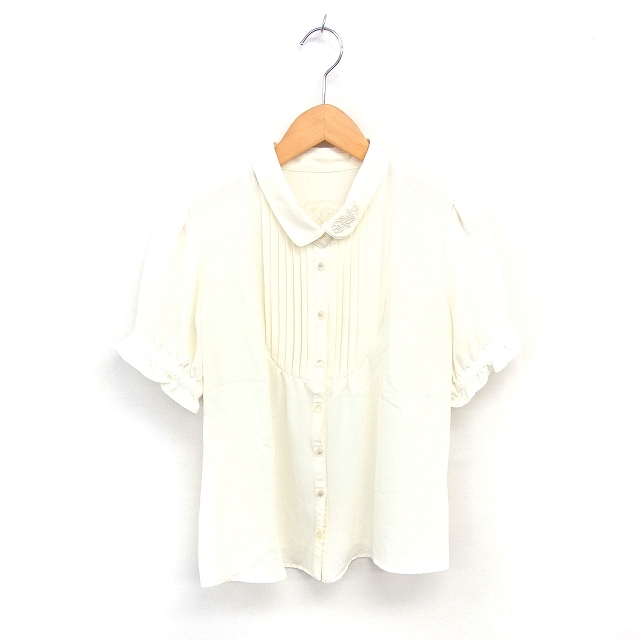 > ペイトンプレイス PEYTON PLACE シャツ ブラウス プリーツ 刺? シアー 透け感 フリル袖 半袖 M クリームイエロー /TT