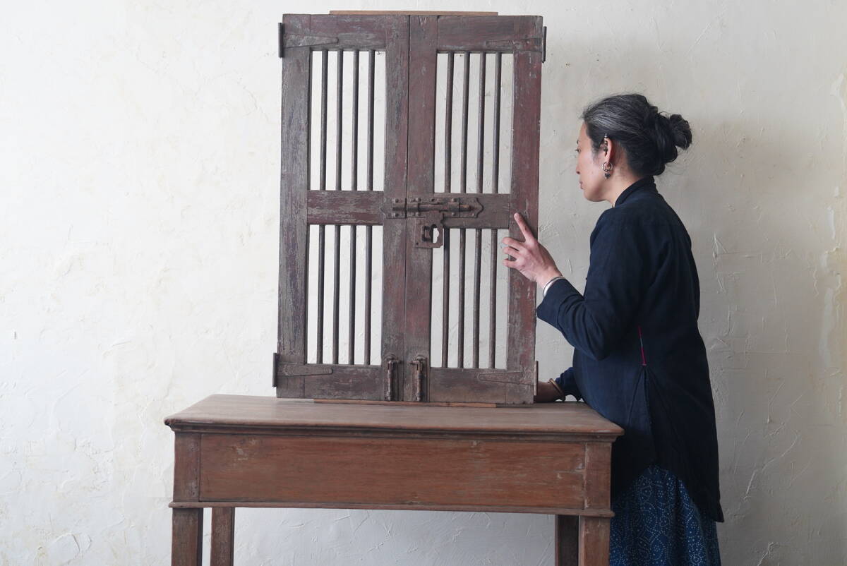 - アンティーク 建具 窓 ドア リノベーション diy 古家具 インテリア ディスプレイ チーク材 古材
