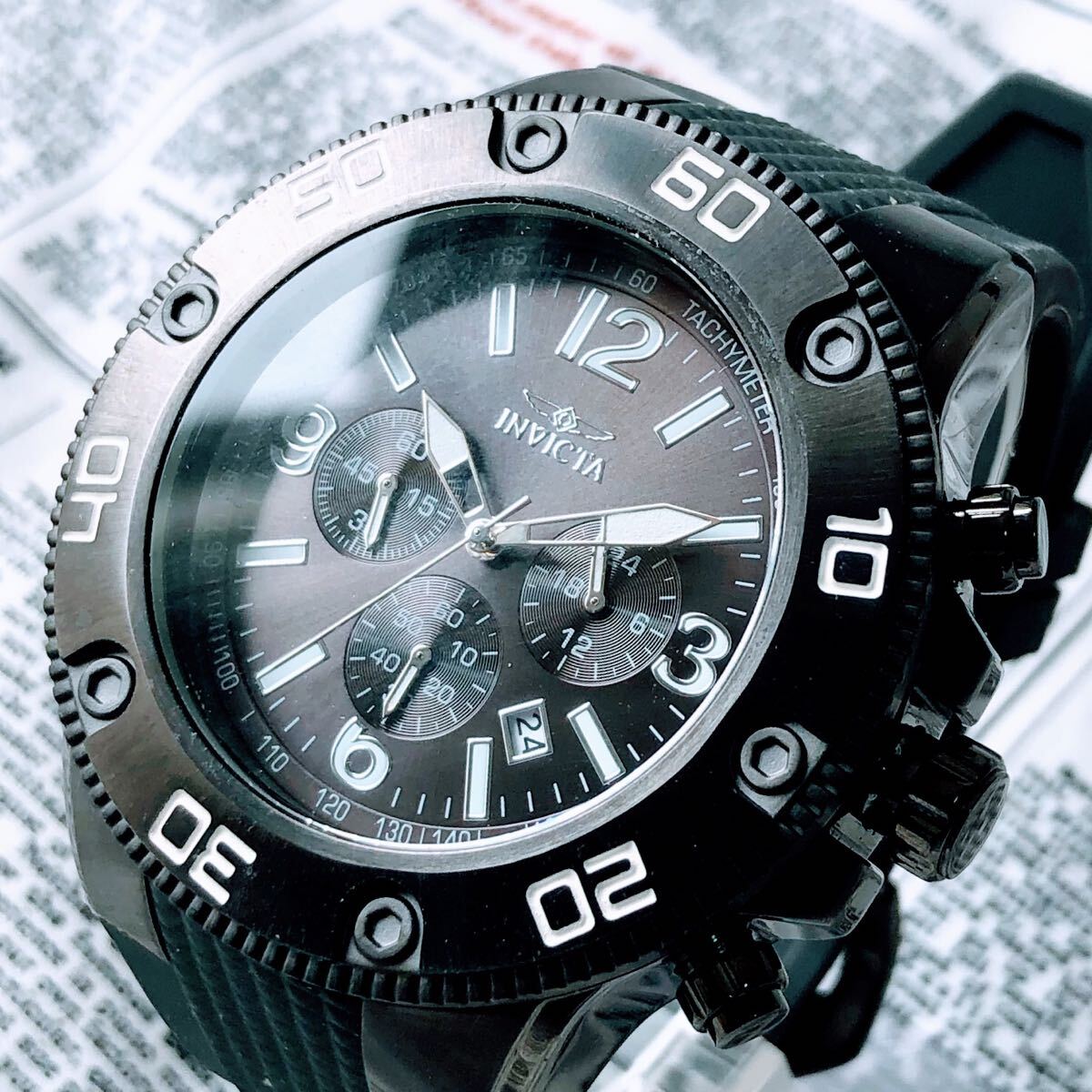 - #3541【人気の黒文字盤】メンズ 腕時計 インビクタ Invicta クォーツ Quartz 動作良好 ブラックダイヤル インヴィクタ クロノグラフ 防水