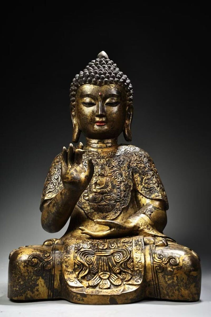 - 【伝世蔵品】旧蔵 中国古美術古玩 極細工 銅製塗金静座観釈迦牟尼 時代物 仏教文物 時代物 骨董 美品 古置物 寺寶 廃寺買取品極細工W250328