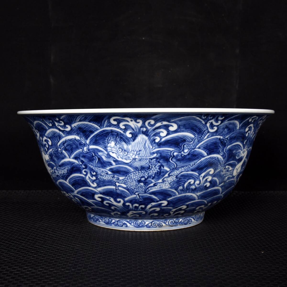 - ▽鴻▽ 明 宣德年製款 青花 海水海怪紋 供碗 古陶瓷品 置物 古賞物 中国古玩 中国古美術