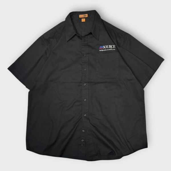 > ★BIGサイズ★SOURCE刺繍★Corner Stone 半袖BDワークシャツ size2XL ブラック系 Refrigeration&HVAC.Inc 古着 クリーニング プレス済み