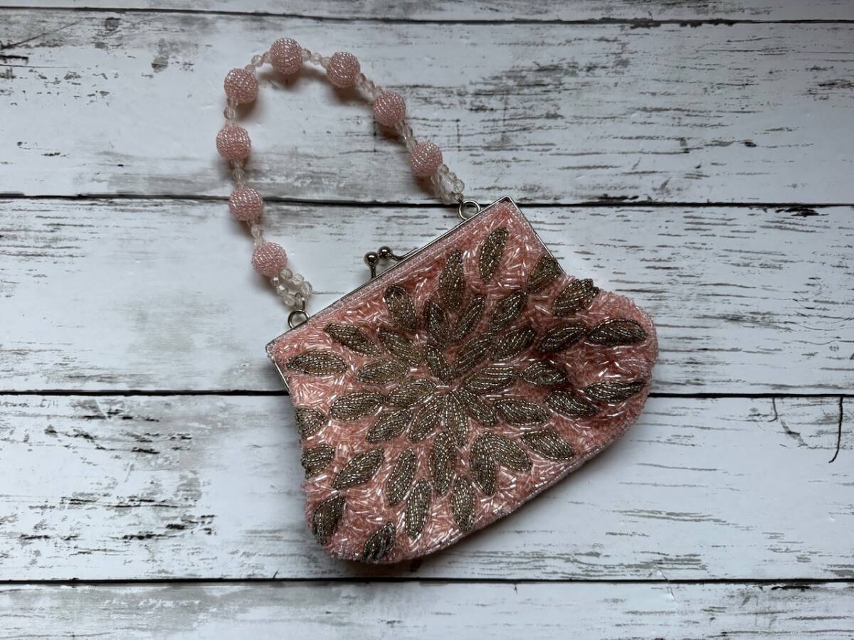 - 昭和レトロ★ビーズバッグ ハンドバッグ ピンク系 ヴィンテージ 着物 和装 パーティー