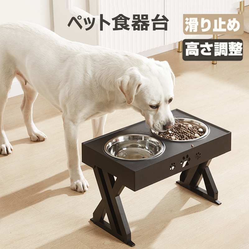 > ペット食器台 犬用 猫用 フードボウル 犬 ダブル 食器テーブル 餌入れ 水入れ 高さ調整可 組み立て簡単 大容量 2碗タイプ 洗いやすい