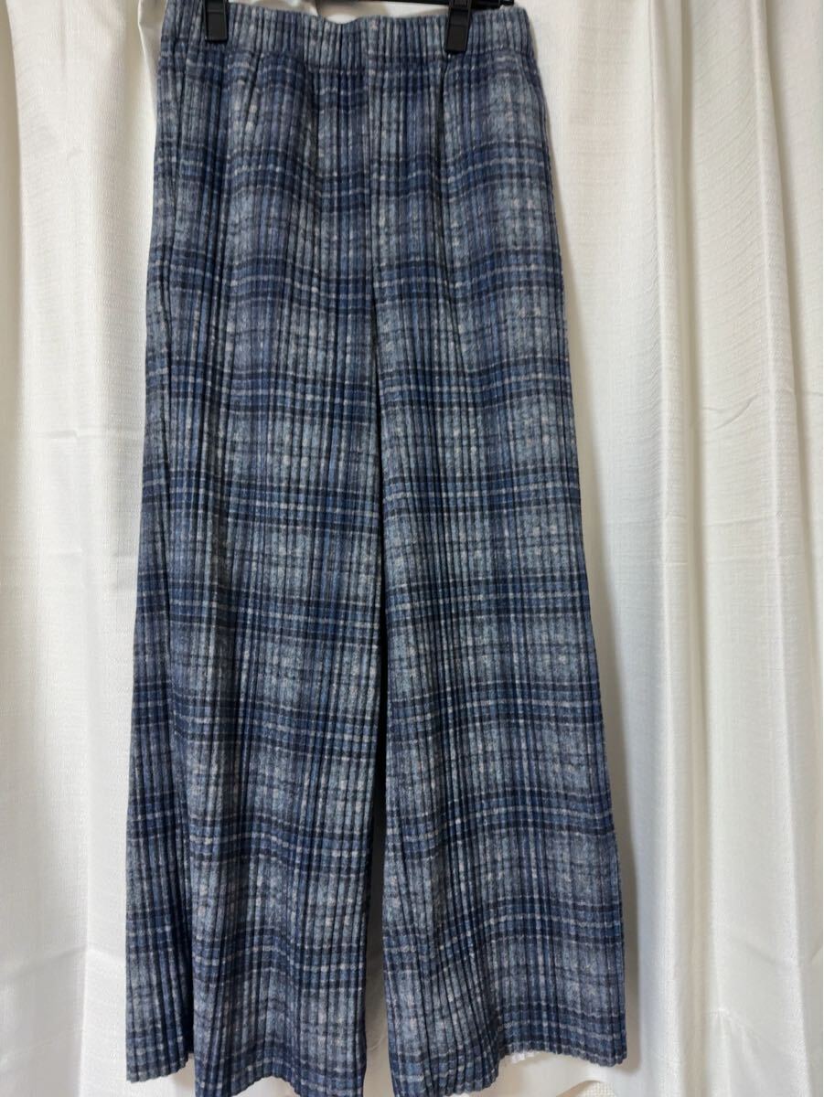 - ワイドパンツ☆プリーツ仕様☆ チェック柄☆ブルー系☆ パンツ☆レディースボトムス☆ゆったりL☆未使用☆ポケット付き☆