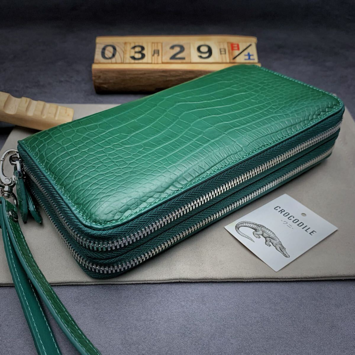> マット仕上げ【センター一枚革】ダブルファスナー クロコダイル ワニ革 長財布 ラウンドファスナー 本物保証 肚革使用 小銭入れあり 実物