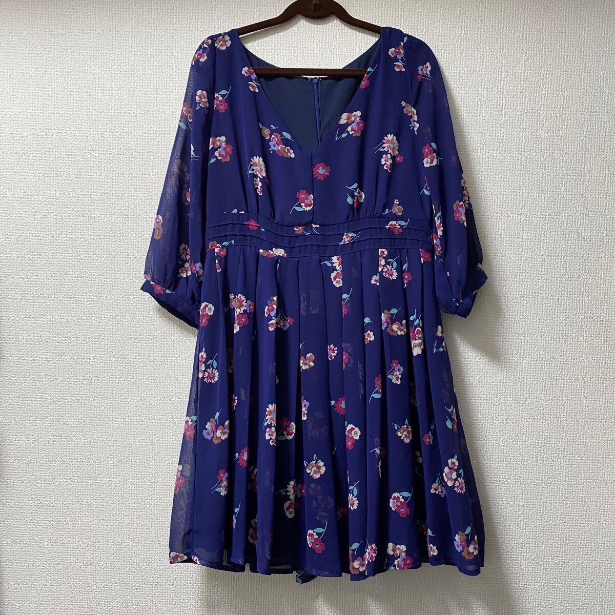 > MERCURY DUO ワンピース / マーキュリーデュオ 花柄 総柄 長袖 ネイビー 紺色 プリーツ ミニワンピ シースルー 透け感 清楚系 ガーリー