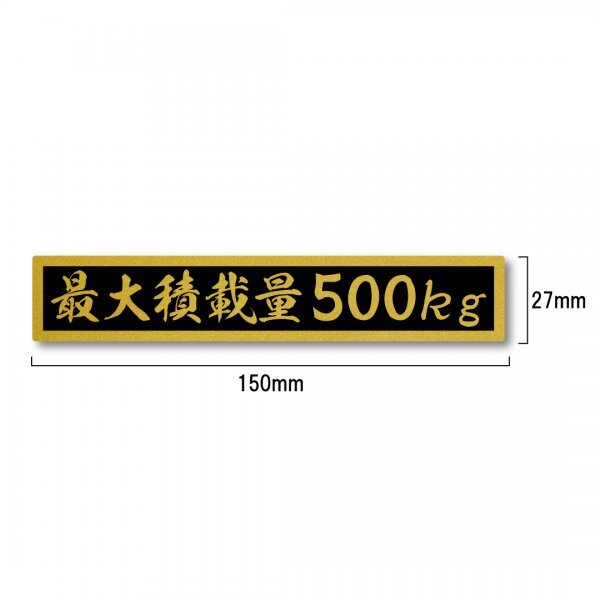 - 最大積載量 ゴールド ブラック 500kg マットラミネート ステッカー 新品 小サイズ 150mmx27mm 国内生産 強粘着 車検 運送 運搬 金 黒