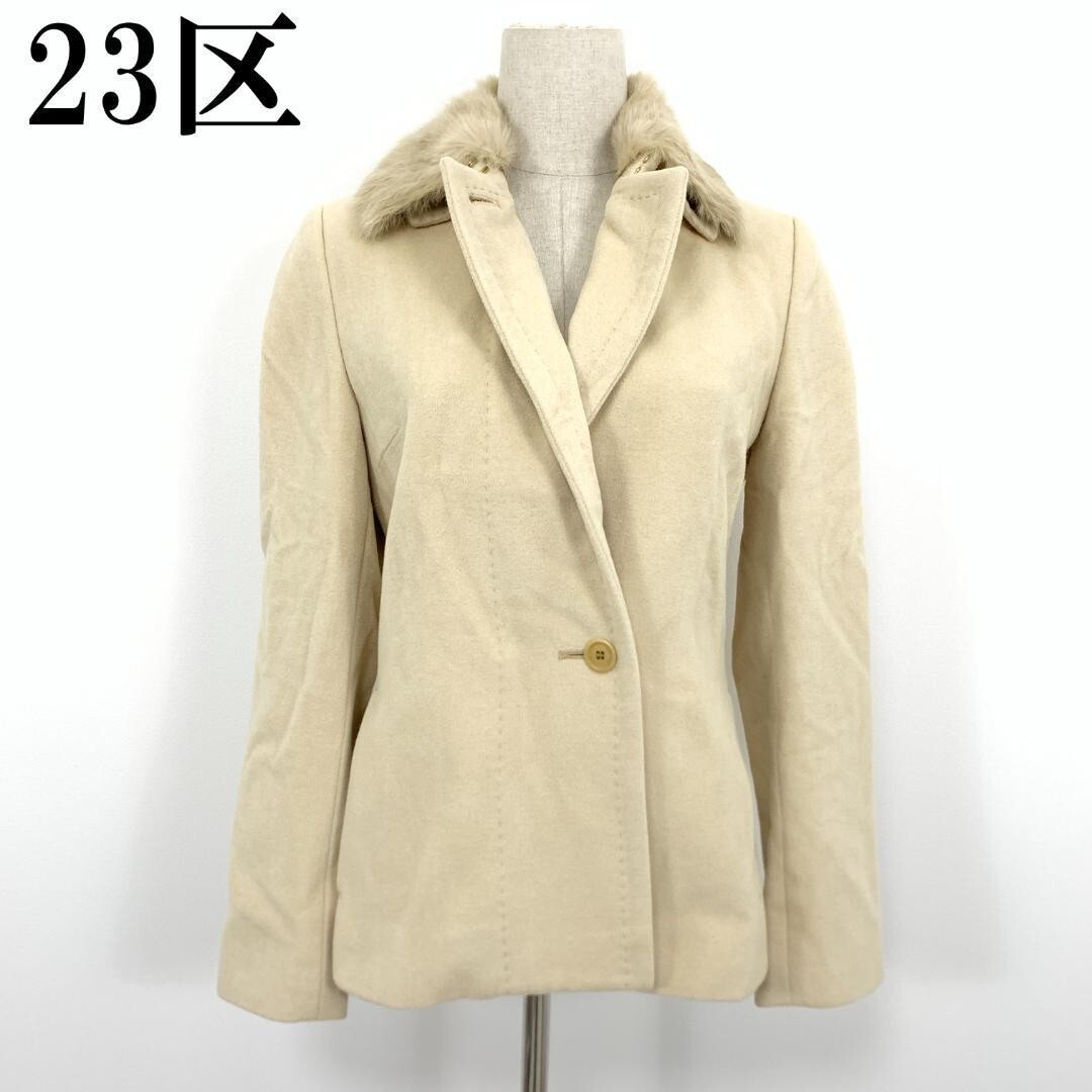 - LA5337 23区 ファー付き アンゴラ ショートコート ベージュカジュアル ファー取り外し可能 サイドポケット有 38