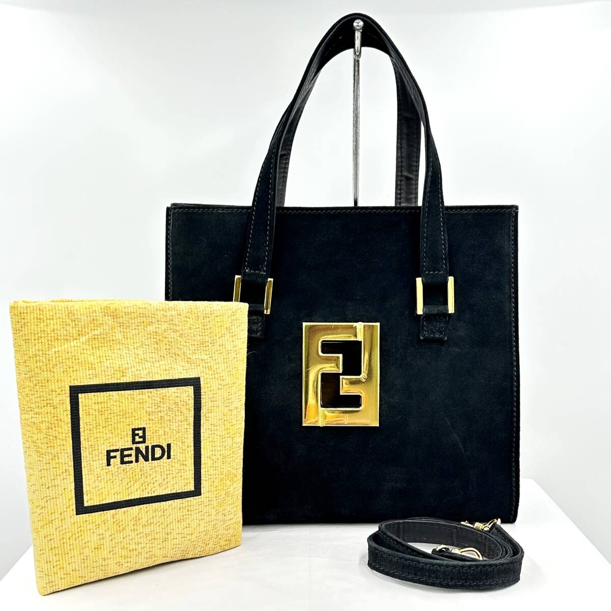 - 【送料無料】中古AB FENDI フェンディ FFロゴ トートバッグ ショルダーバッグ 2WAY ブラック スウェード レディース 150161