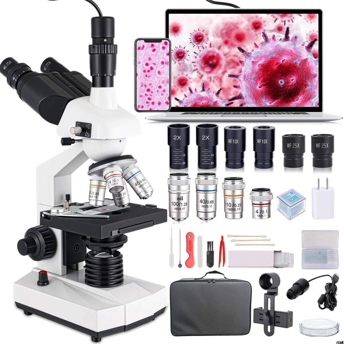 - 【大学や研究室、臨床研究に最適で、専門家向けに設計】顕微鏡 40倍~5000倍 三眼設計 学生 初心者 プレゼント 自由研究 学習