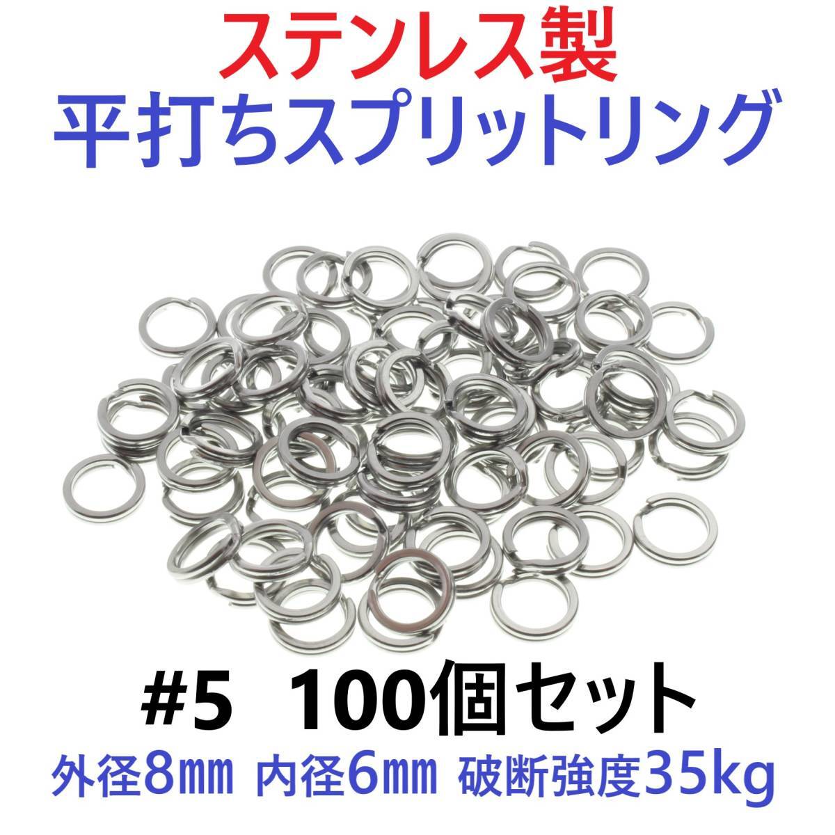 > 【送料150円】ステンレス製 平打ち スプリットリング #5 外径8mm 100個セット ルアーのフック交換に!