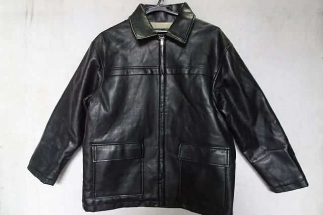 - レザージャケット/アウター/柔らかい手触りのレザー/前ジップアップ/フラップポケット/袖口ファスナー/黒/ブラック/Mサイズ(3/31R7)
