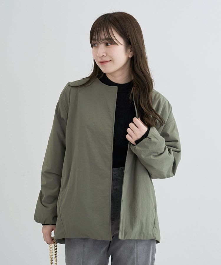 - 送料込み!802未使用品◎Green Parks シームレスライト中わたノーカラーブルゾン(F)
