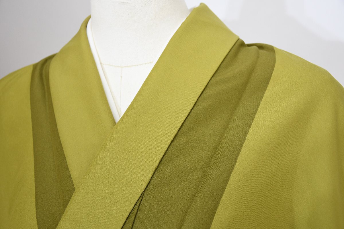 - 小紋 着物 単衣 居敷当て 縞 緑 化繊 身丈158cm 裄丈67cm ★ kb-6658 桜庭呉服店
