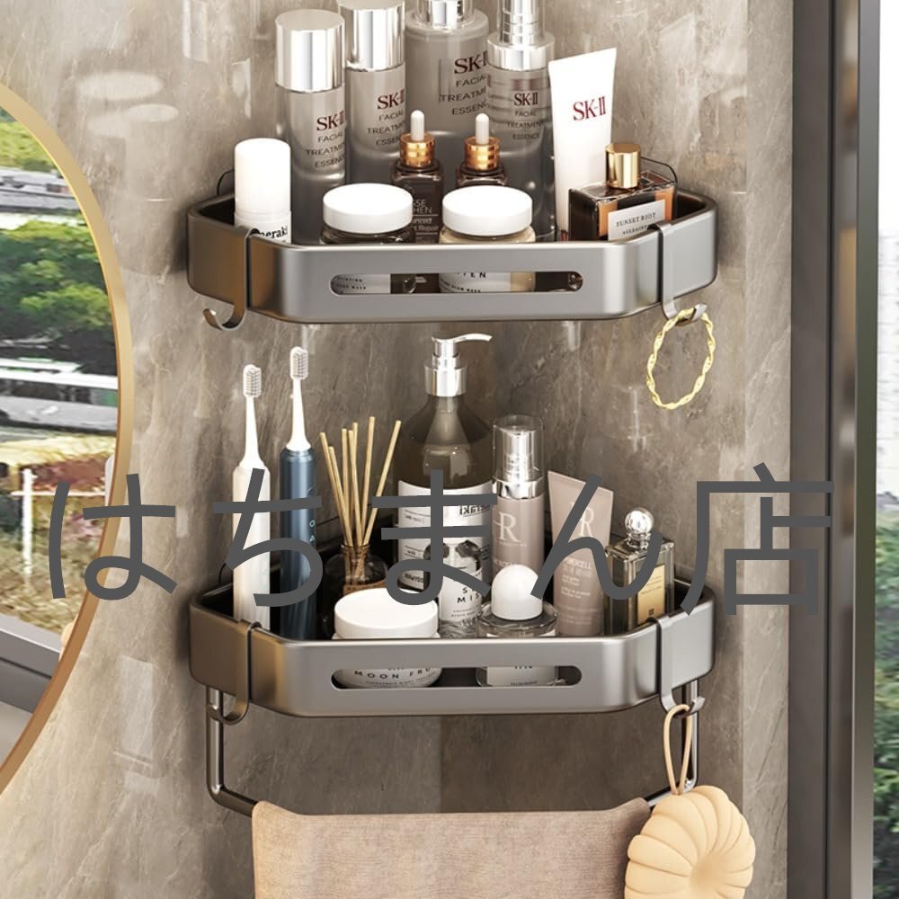- 浴室ラック コーナーラック 三角 アルミ合金 水切り収納ラック 穴あけ不要 浴室トイレ収納壁掛けラック 多機能三角掛けラック (灰です)