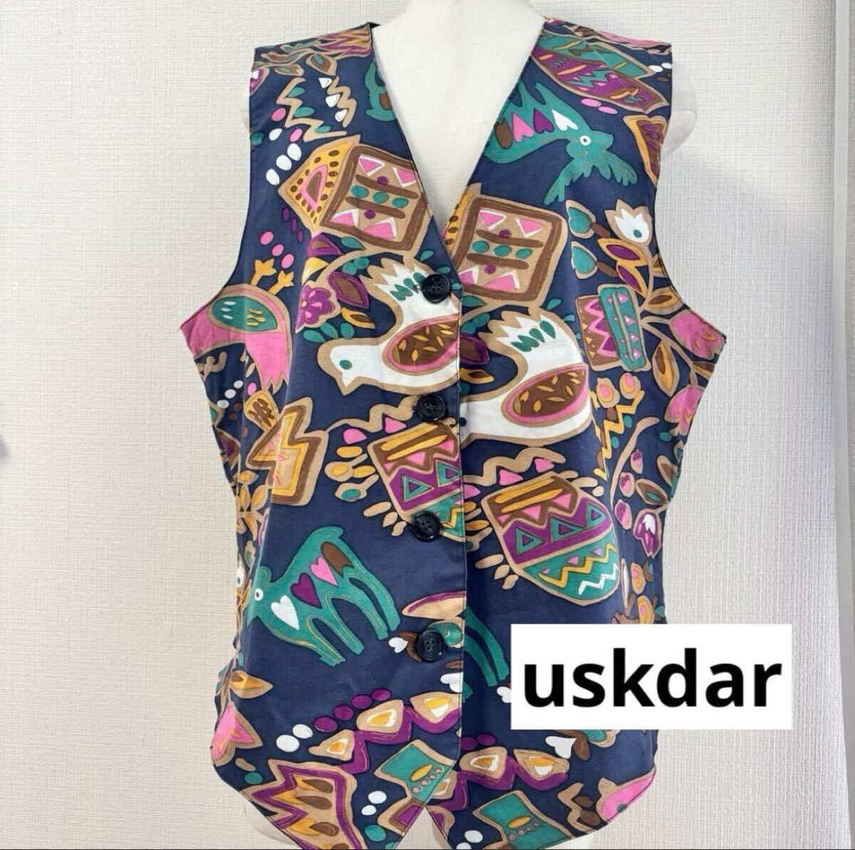 - 美品◇uskdar◇ウスクダラ◇カラフルベスト◇アニマル*フラワー◇L-LL